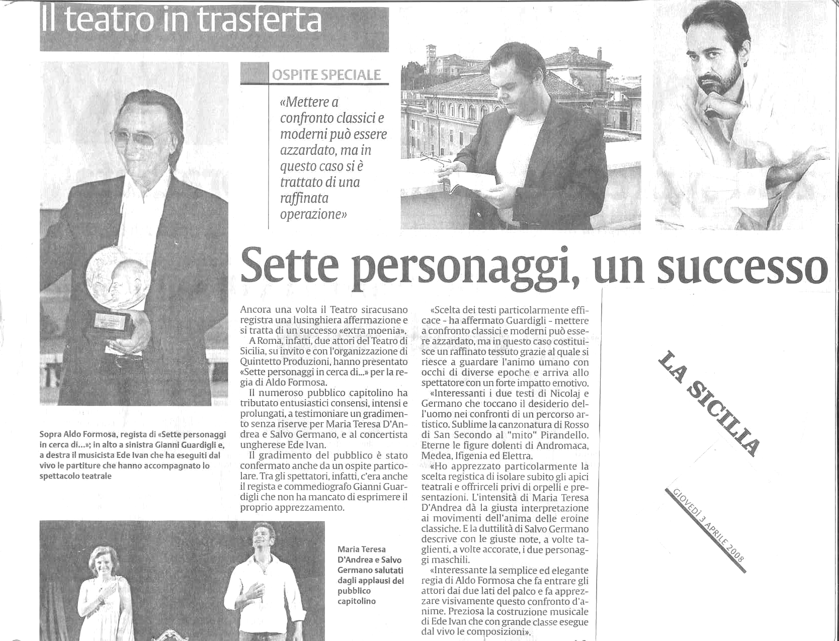 Dal quotidiano "La Sicilia" una recensione del lavoro teatrale di Aldo Formosa, presentato da "il Quintetto" al teatro Arciliuto di Roma.